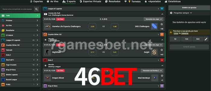 A aposta 46bet oferece aos jogadores a experiência mais conveniente de apostas em eSports!